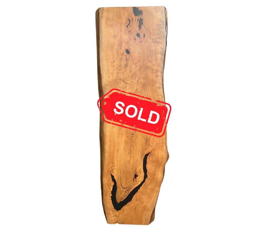 14×52 Rustic Cherry Live Edge Slab with Black Epoxy – $730